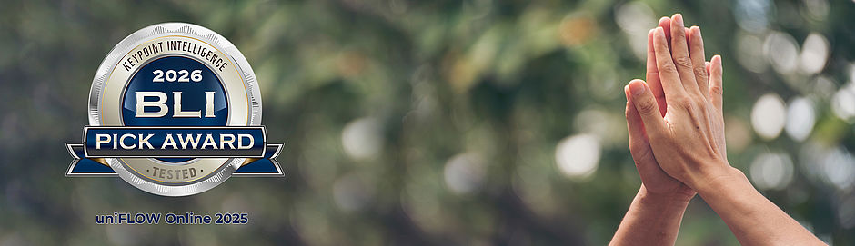 Zum achten Mal in Folge wurde uniFLOW Online von Keypoint Intelligence mit dem renommierten BLI 2026 Pick Award ausgezeichnet – eine der wichtigsten Auszeichnungen im Bereich Print- und Dokumentenmanagement.